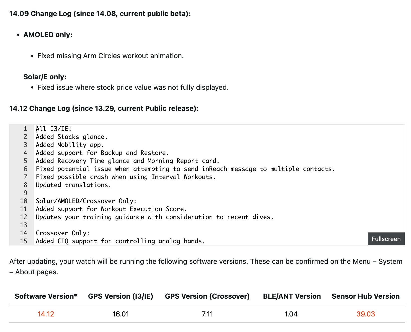 Stattdessen verweist das amerikanische Unternehmen auf das gleiche Changelog, das bereits in der Beta Version 14.09 enthalten gewesen ist. Dennoch deuten die zahlreichen Meldungen in Garmins öffentlichem Forum für Fehlerberichte darauf hin, dass v14.12 unter genau den gleichen Bugs leidet wie die älteren Firmware-Versionen für die besagten Smartwatches.