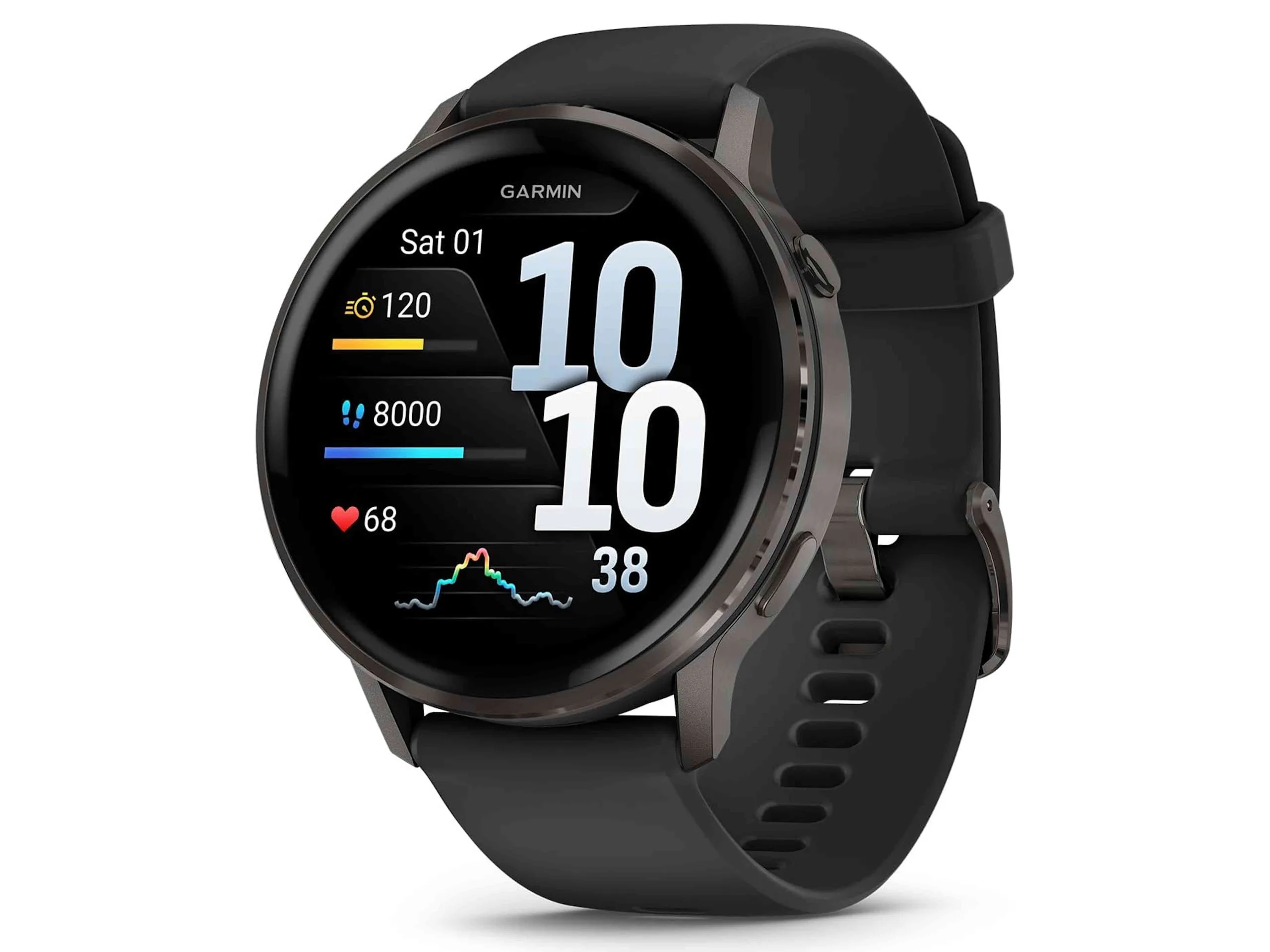 Die 45-Millimeter-Version kommt mit einem 1,4 Zoll großen Display mit einer Auflösung von 454 x 454 Pixeln. Der AMOLED-Bildschirm kann auch durchgehend aktiviert bleiben, die im Smartwatch-Modus erreichbare Laufzeit sinkt dann aber von maximal 12 auf nur maximal 4 Tage und damit sehr signifikant. Im Energiespar-Smartwatch-Modus soll eine Laufzeit von bis zu 25 Tagen erreichbar sein. Wird eine sportliche Aktivität unter Nutzung aller kompatiblen Ortungsdienste aufgezeichnet, sind 19 Stunden erreichbar, bei gleichzeitiger Musikwiedergabe noch 9 Stunden, was auch für die Tagesetappe beim Wandern oder den Marathon reichen dürfte. Verbaut ist eine optische Sensorik zur Messung der Sauerstoffsättigung, der Herzfrequenz und der Herzfrequenzvariabilität, Werte zur Laufeffizienz können aufgezeichnet werden. Nützlich könnte die verbaute LED-Taschenlampe sein, beispielsweise bei Laufaktivitäten in der Dämmerung.