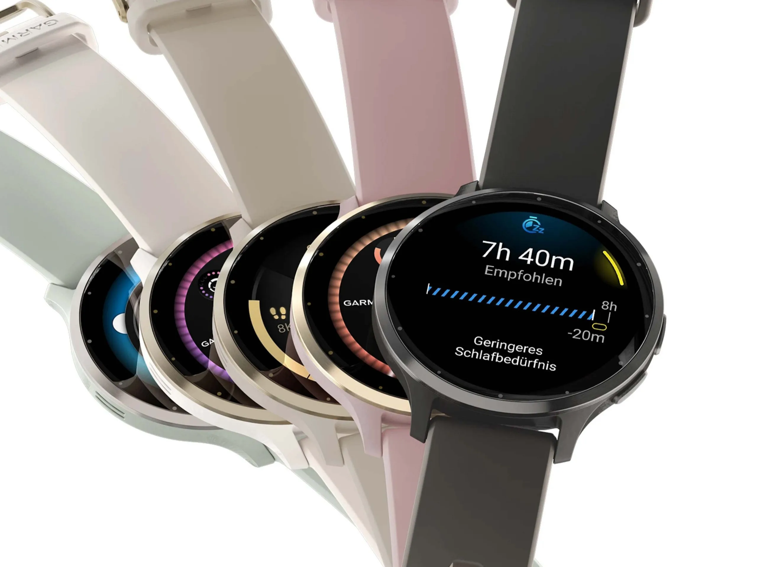 Die Venu 3S ist - das S im Namen deutet es schon an - besonders kompakt und dürfte sich damit auch für schlankere Handgelenke gut eignen. Die bis zu einem Prüfdruck von 5 ATM wasserdichte Uhr ist mit einem 1,2 Zoll großem AMOLED-Bildschirm mit einer Auflösung von 390 × 390 LPixeln ausgestattet, wobei der AMOLED-Bildschirm auf Wunsch auch die ganze Zeit aktiviert wird. Dann reduziert sich die maximale Laufzeit entsprechend. Im Smartwatch-Modus soll die Uhr bis zu 10 Tage durchhalten.