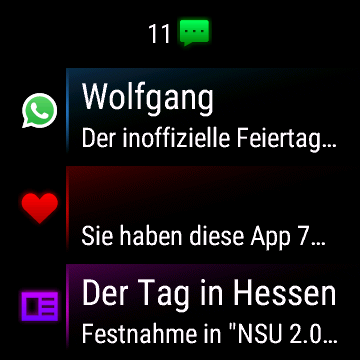 Aus der Benachrichtigung zu einem verpassten Anruf kann man den Rückruf einleiten. Emojis in Nachrichten aus den den sozialen Netzwerken zeigt sie größtenteils an. Hilfreich beim Sport: Während des Trainings kann man die Anzeige der Smartphone-Benachrichtigungen unterdrücken.