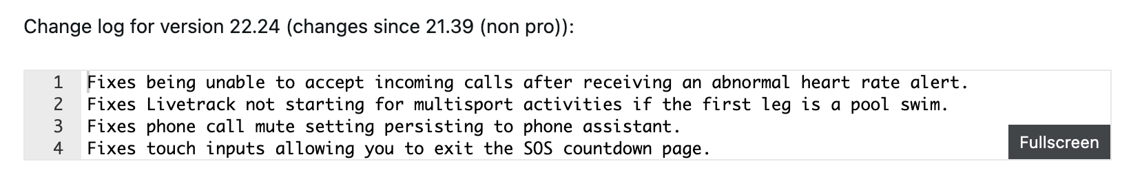 Mit Beta-Version 22.24 behebt Garmin nun ein Problem im Zusammenhang mit dieser neuen LiveTrack-Funktion. Ein Fehler, durch den die Funktion bei Multisport-Aktivitäten nicht automatisch gestartet ist, genauer gesagt bei Aktivitäten, die mit Schwimmen im Pool begonnen haben, wurde behoben. Mit diesem Update hat das Unternehmen außerdem einen Fehler korrigiert, durch den sich ein eingehender Anruf nach einem Alarm wegen einer ungewöhnlichen Herzfrequenz nicht annehmen ließ. Zusätzlich wurden Probleme mit der Stummschaltung bei Anrufen und mit der SOS-Countdown-Seite behoben.