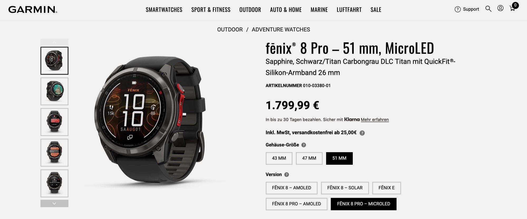 Garmin senkt Preis der Fenix 8 Pro microLED permanent
