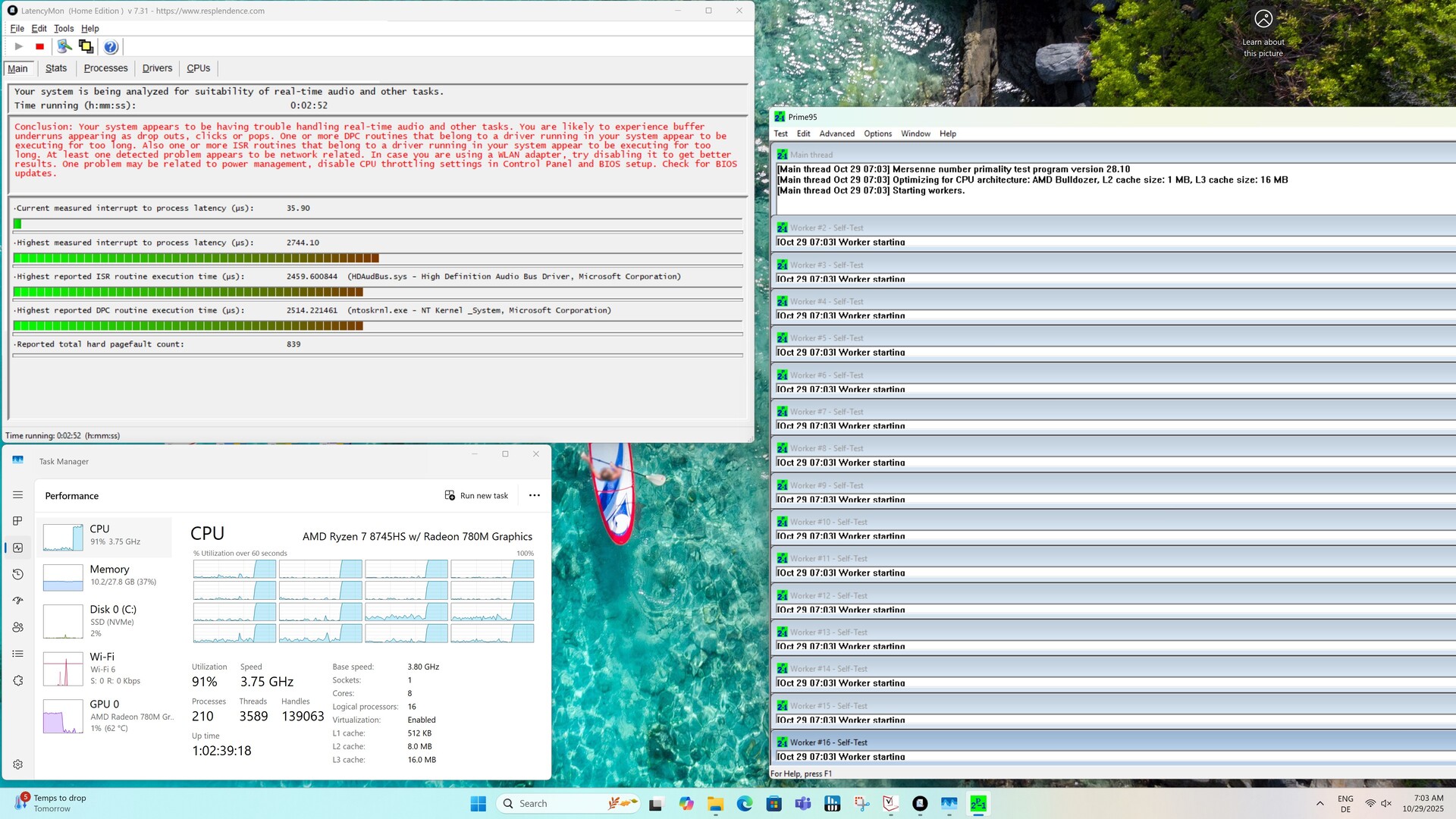 | DPC Latencies / LatencyMon - interrupt to process latency (max), Web, Youtube, Prime95 | |