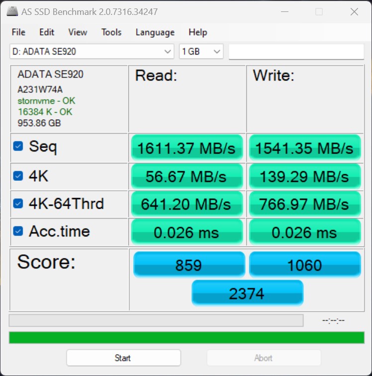 | Connectivity - USB 3.x / USB4 / TB - AS SSD Seq Read Test (1GB) | |