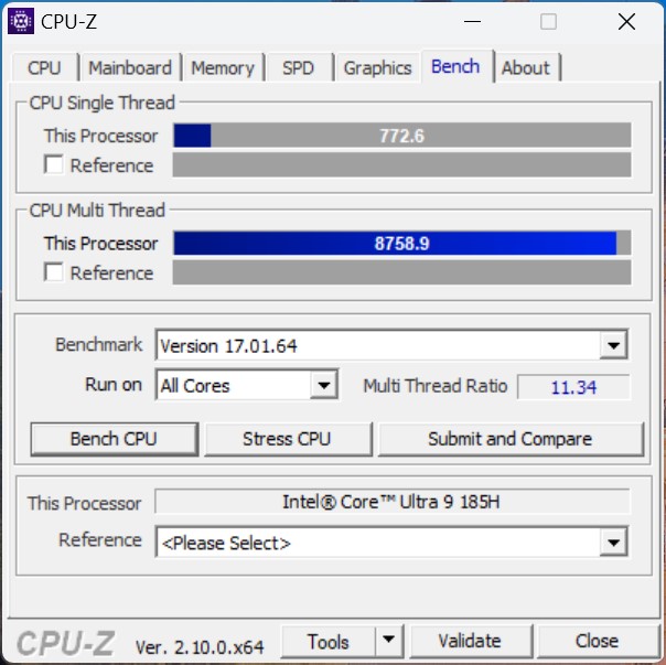 Der Geekom GT1 Mega wird in der Topausstattung von einem Intel Core Ultra 9 185H angetrieben. 16 Kerne mit zusammen 22 Threads sorgen für ein hohes Arbeitstempo, was sich primär bei Multi-Thread-Aufgaben auszahlt. Bei der Single-Core-Performance braucht sich unser Testsample jedoch auch nicht zu verstecken. Oftmals führt der GT1 Mega die Benchmark-Ergebnisse an. Insgesamt kann sich unser Testmuster dann aber nur den zweiten Platz sichern. Der härteste Konkurrent ist hier der Geekom AX8 Pro, den wir mit AMD Ryzen 9 8945HS getestet haben.