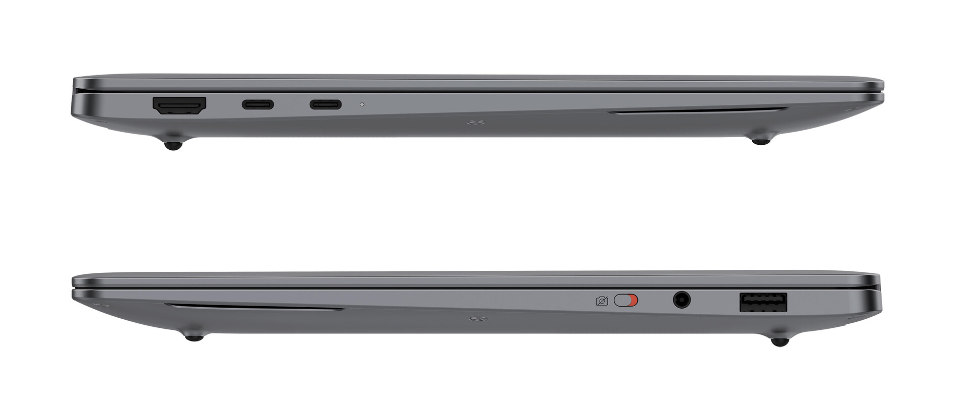 Unter der Haube arbeiten aktuelle Intel Core Ultra 5 125H oder Core Ultra 9 185H Prozessoren (Arrow Lake) mit einer TDP von bis zu 35 Watt. Die kompakte Bauweise hindert Geekom nicht daran, die Laptops mit praxistauglichen Schnittstellen zu bestücken. Zwei USB-C-Ports mit USB‑4‑Unterstützung, ein USB-A-Anschluss, HDMI 2.0 sowie eine 3,5-mm-Klinkenkombibuchse decken die wichtigsten Schnittstellen ab. Für drahtlose Verbindungen stehen Wi-Fi 6E und Bluetooth 5.4 bereit.