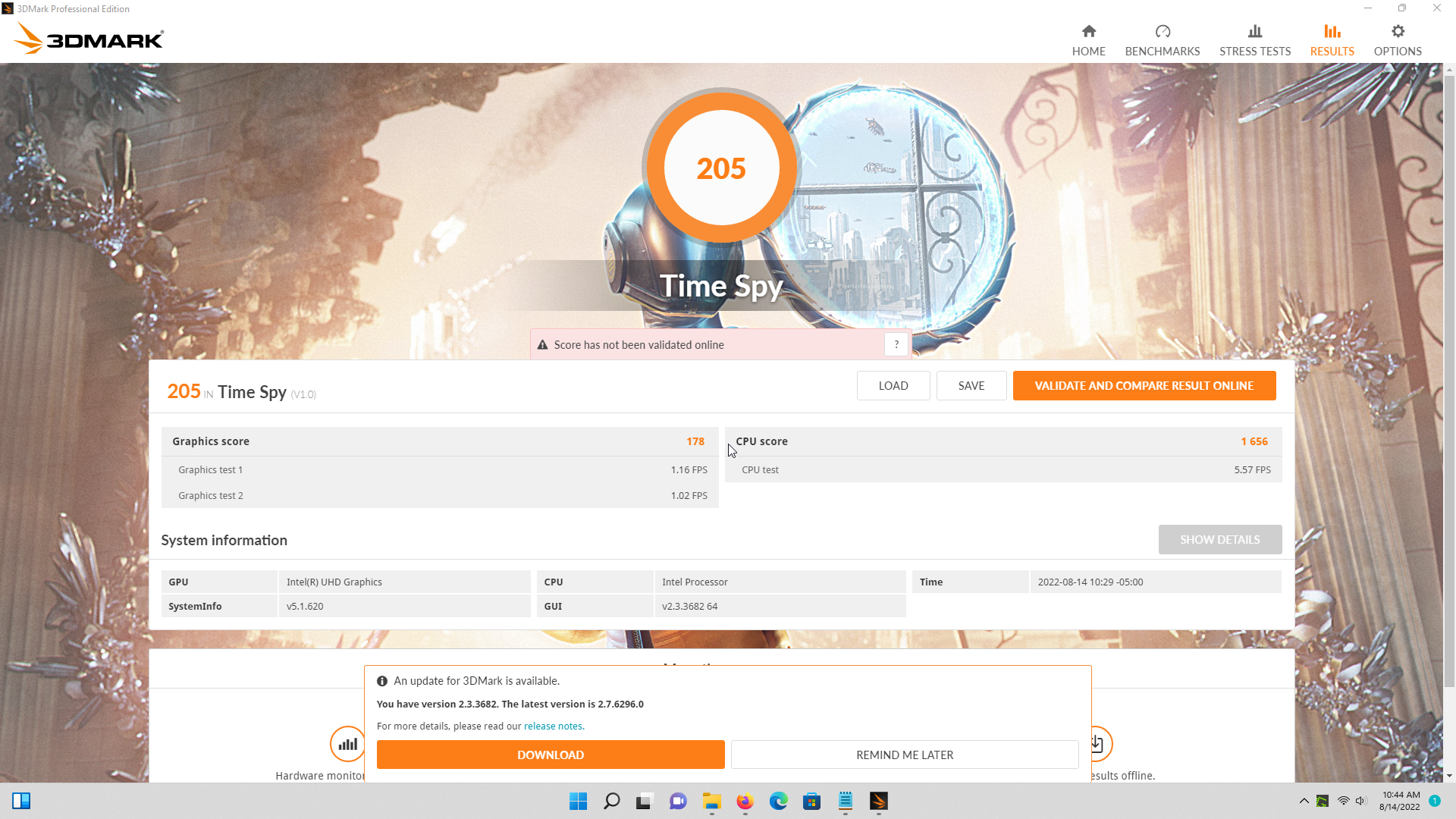 | 3DMark Time Spy Score | 205 Punkte | |