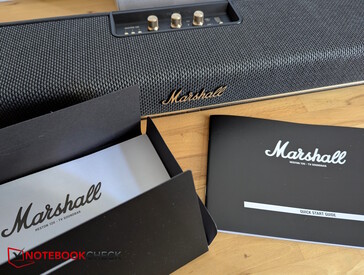 Eine Soundbar bekommen wir schicker und stylischer hin, mögen sich die Designer bei Marshall gedacht haben. Immerhin möchte der Hersteller all jene audioaffinen Hörer abholen, die gleichzeitig keine Lust haben, sich eine der typisch schwarz-glänzenden Plastik-Soundbars diverser Hersteller auf das TV-Board zu stellen. Und so ist schon die Verpackung eine Design-Ode an fetzige Gitarrensounds.