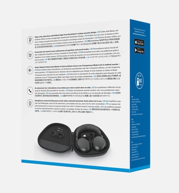 Ein Bild der Verpackung bestätigt die Akkulaufzeit von 60 Stunden – damit können die Momentum 4 zwischen Ladevorgängen fast viermal so lange wie ihre Vorgänger genutzt werden. Ähnlich wie die Apple AirPods Max können sich die Kopfhörer automatisch ein- und ausschalten, im Gegensatz zu den meisten Konkurrenten besitzen die Momentum 4 keinen Einschalt-Knopf. Die Wiedergabe kann automatisch pausiert werden, wenn die Kopfhörer abgenommen werden.