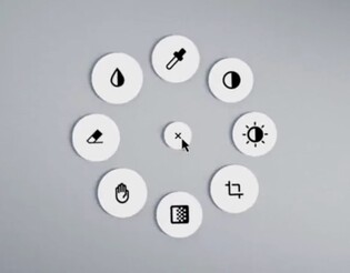 Dieses zeigt eines der interessantesten neuen Features in Aktion, nämlich die Daumenstütze, die als Button mit haptischem Feedback fungiert. Wird mit dem Daumen auf diese gedrückt, öffnet sich ein sogenannter "Actions Ring" am Bildschirm, der acht Aktionen rund um den Mauszeiger platziert. Diese Aktionen dürften vom Nutzer angepasst werden können und sich je nach Kontext ändern, etwa um Photoshop-Werkzeuge auszuwählen oder Text zu formatieren.