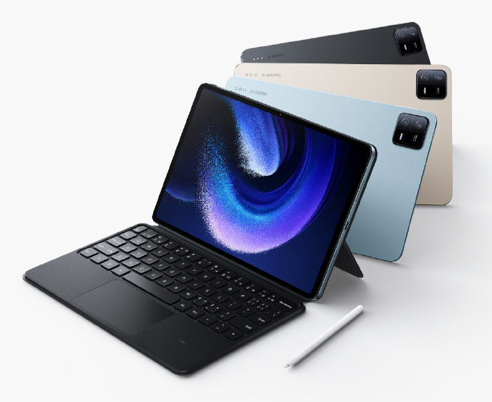 Wie erwartet kommt auch die Xiaomi Pad 6 Serie zu dem Termin. Dies hat der Hersteller nun offiziell bestätigt. Dazu hat man auch gleich noch das Design auf ersten Teasergrafiken enthüllt, wobei nicht klar ist, welches Modell genau zu sehen ist. Das Gerät zeigt sich mit den erwartet dünnen Displayrändern und einer Dual-Kamera samt 50 MP Hauptsensor auf der Rückseite. Abgebildet ist das Tablet in den drei Farben Schwarz, Beige und Blau. Ebenfalls zu sehen ist das bereits geleakte und verbesserte Cover Keyboard, das mit Touchpad und NFC aufwartet. Dazu zeigt Xiaomi auch den dazugehörigen Eingabestift.