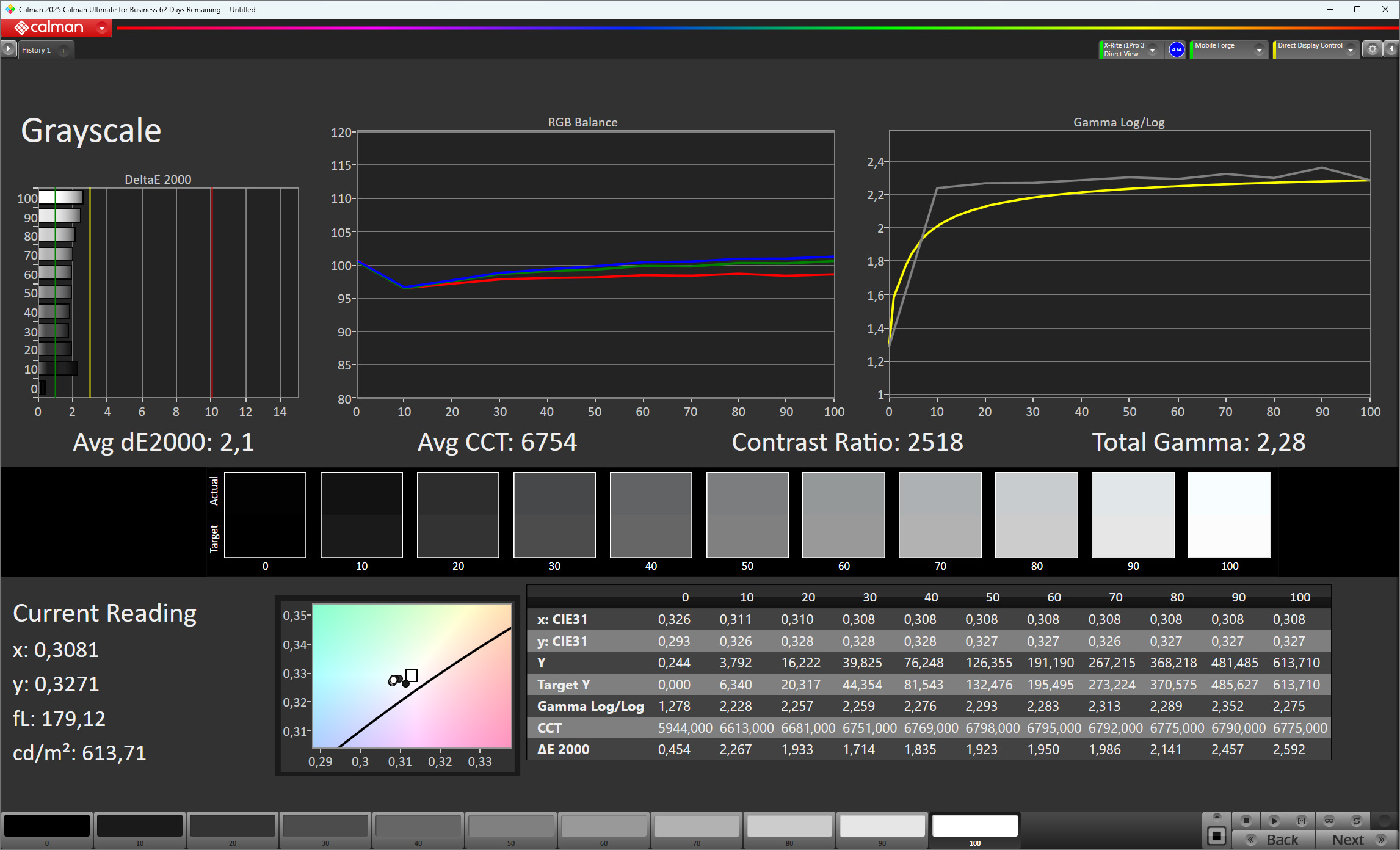 ΔE Greyscale Calman: 2.1 | ∀{0.09-98 Ø5}