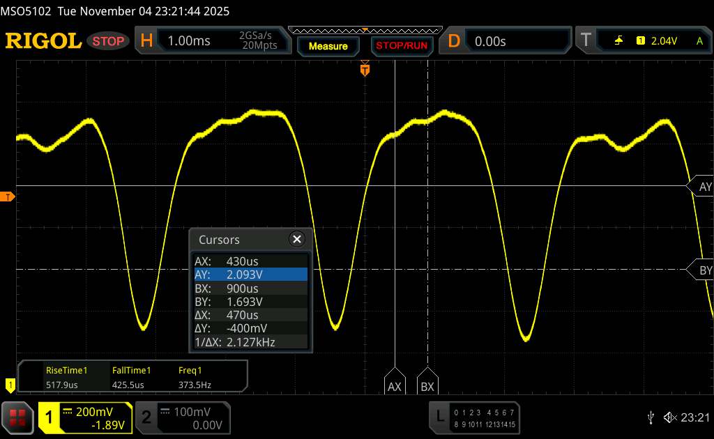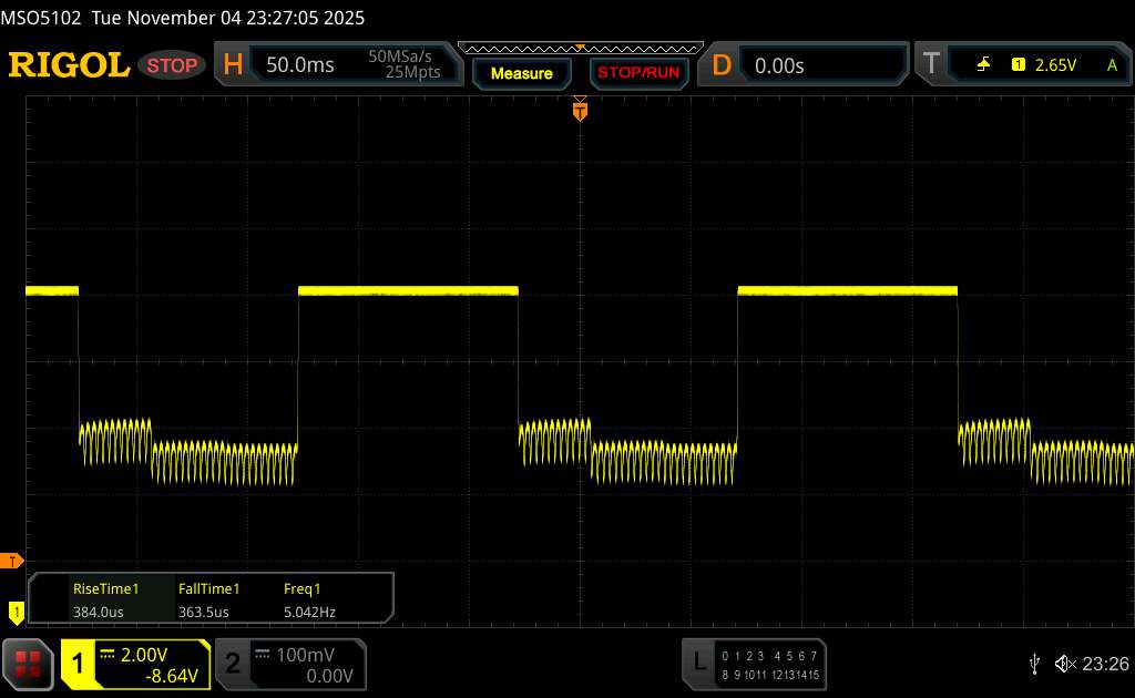 | Flackern / PWM festgestellt | 360 Hz Amplitude: 12.85 % Secondary Frequency: 2127 Hz | ||