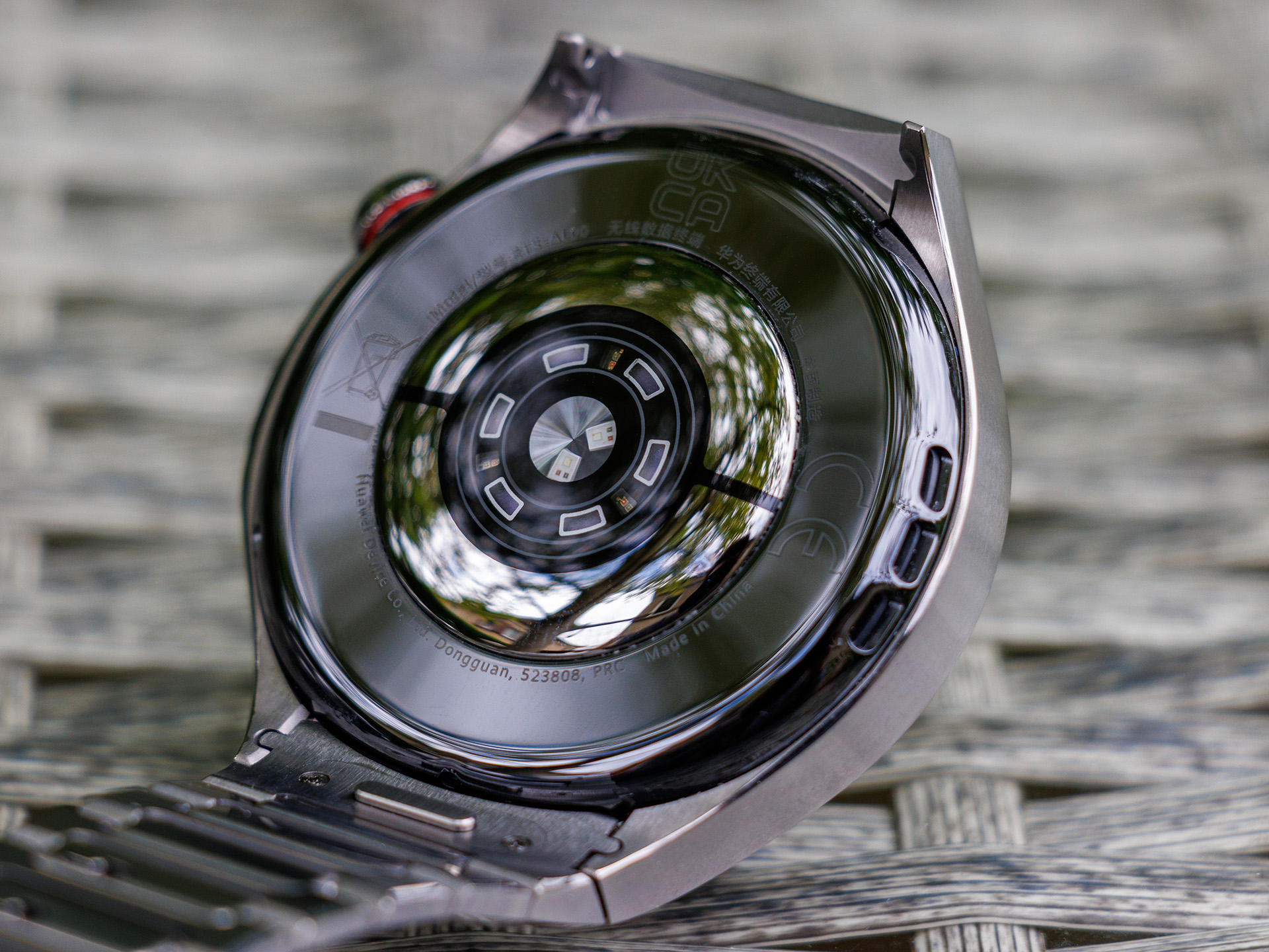 Die Huawei-Smartwatches sind nicht zu schwer und kommen in der großen Variante auf 56 Gramm in der Titanvariante (ohne Armband, Edelstahl: 61 g). Das kleinere Modell wiegt 50 (904L) beziehungsweise 48 Gramm (316L). Die Verarbeitung gefällt uns im Test sehr gut und überzeugt mit enganliegenden Spaltmaßen sowie einer hochwertigen Optik. Auch die Stabilität ist sehr hoch und die Haptik ansprechend. Auch bei den Rückseiten gibt es Unterschiede: So kommt entweder ein Hochleistungsfaser- (46 sowie 42 mm 316L) oder ein Keramik- Verbundstoff (46 mm Titan und 42 mm 904L) zum Einsatz.