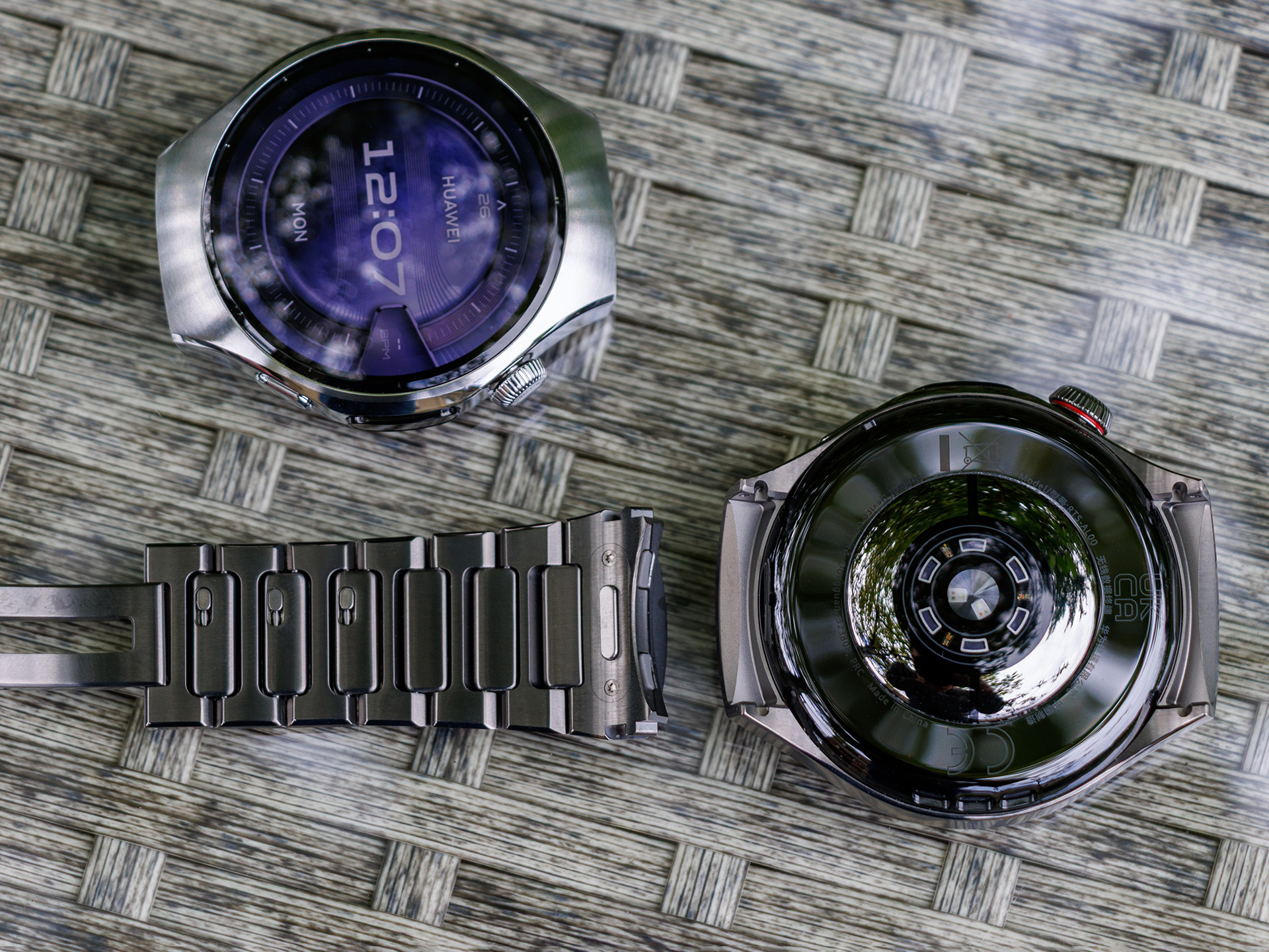 In summa offeriert Huawei die Watch 5 in acht Varianten, welche sich auf jeweils vier Stück mit 46 beziehungsweise 42 mm verteilen. Das große Modell setzt in drei Varianten auf ein Gehäuse aus einer Titanlegierung in Luft- und Raumfahrtqualität sowie eine weitere aus Edelstahl (316L). Das Display-Oberflächen-Verhältnis gibt Huawei mit 80,4 % an. Als Farben ist das Titangehäuse in Silber (entweder mit Titanarmband oder braunem Kompositarmband) oder in Purple (mit Kompositarmband) erhältlich. Das Edelstahlmodell ist schwarz. Die Armbänder lassen sich über den Schnellverschluss (22 mm) werkzeuglos wechseln. Auch die Glieder der Titanarmbänder lassen sich ohne Werkzeug einsetzen oder entfernen.