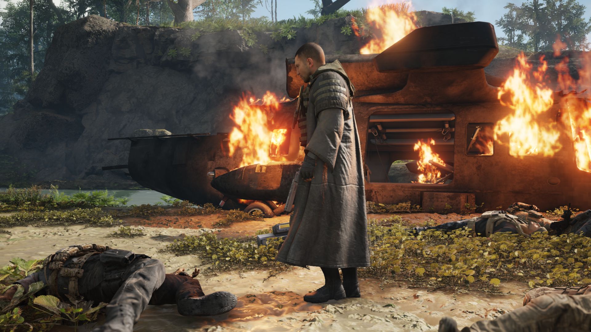 Wenn man einige Texturen ausklammert, die noch etwas schärfer sein könnten, gibt es fast nichts an der Optik zu bemängeln. Angefangen mit den Charaktermodellen, die sehr detailliert sind und größtenteils über schicke Animationen verfügen bis hin zu der offenen Spielwelt. Dank der üppigen Weitsicht und der dichten Vegetation bietet Ghost Recon Breakpoint eine stimmige Atmosphäre. Hinzu kommen nette Details wie verschmutzende Kleidung und Furchen beim Robben.