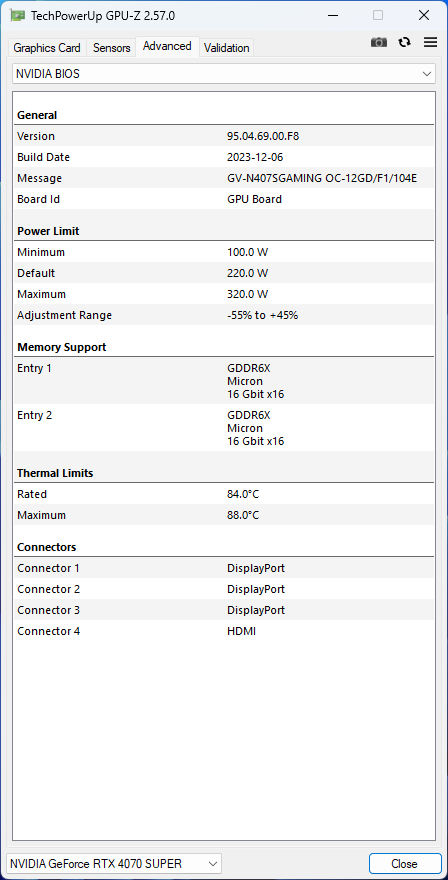 Darüber hinaus verfügt die Karte von Gigabyte über einen höheren Leistungsspielraum mit der Fähigkeit, bis zu 320 W zu pushen, verglichen mit den 240 W TGP der RTX 4070 Super FE.