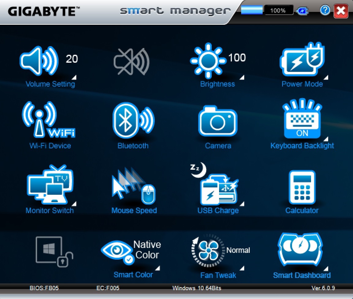 Auf Wunsch lässt sich die GeForce GTX 1070 noch weiter beschleunigen. Im vorinstallierten Smart Manager entdeckten wir eine Option namens "Gaming Overclock", die mehrere Levels enthält und anscheinend nur für das P57X v6 existiert. Apropos Smart Manager: All unsere Messungen wurden mit dem Lüfter-Setting "Normal" durchgeführt (Fan Tweak).