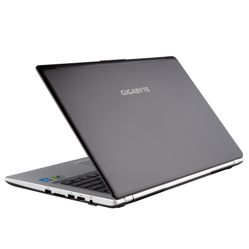 Mit seinem einfachen Design ähneln Aussehen und Haptik dieses eleganten 14-Zoll Notebook dem MacBook Air. Es hat eine Oberseite aus Aluminium und eine elegante Unterseite aus Kunststoff. Der Laptop wird durch eine leistungsstarke Nvidia GeForce Grafikkarte und einen Intel Core i7-4700HQ (2x 2.4-3.4 GHz) angetrieben. Zudem verfügt er über Gigabyte's IPS Full HD Bildschirm (1920 x 1080 Pixels) und eine Tastatur mit Hintergrundbeleuchtung. Die IPS-Technologie verbessert Kontrast, Farben und Blickwinkelstabilität. Grundsätzlich kann man den Bildschirm von allen Winkeln ohne der Abdunklung zu der die meisten Bildschirme tendieren, betrachten.