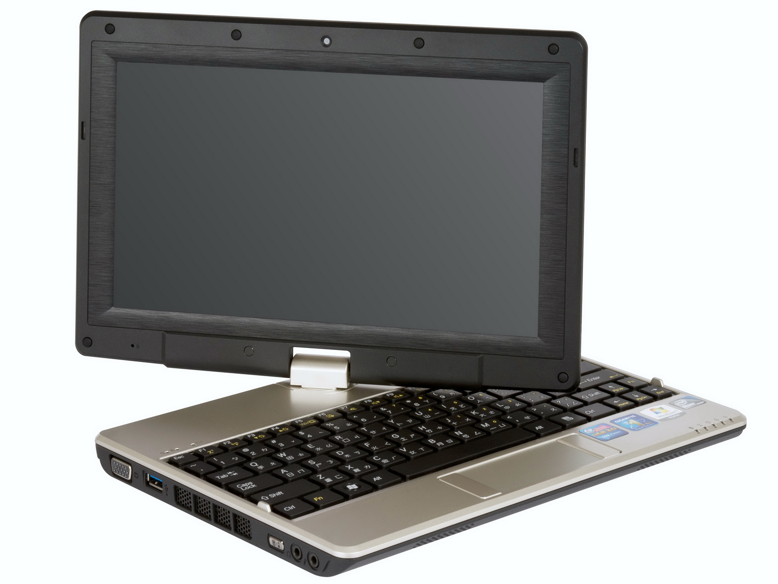 Gigabytes neuester Convertible Tablet-PC oder auch Netvertible T1006 lässt sich wie schon das Modell T1005M dank dreh- und klappbarem 10,1“-Multitouch-Display, das mit einer Auflösung von 1.366 x 768 Bildpunkten arbeitet, sowohl als Netbook als auch wie ein Tablet-PC nutzen. Auch das T1006 wird von Intels neuer Atom-Generation Cedar Trail angetrieben. Preise und Verfügbarkeit für das S1081 und T1006 nannte Gigabyte nicht.