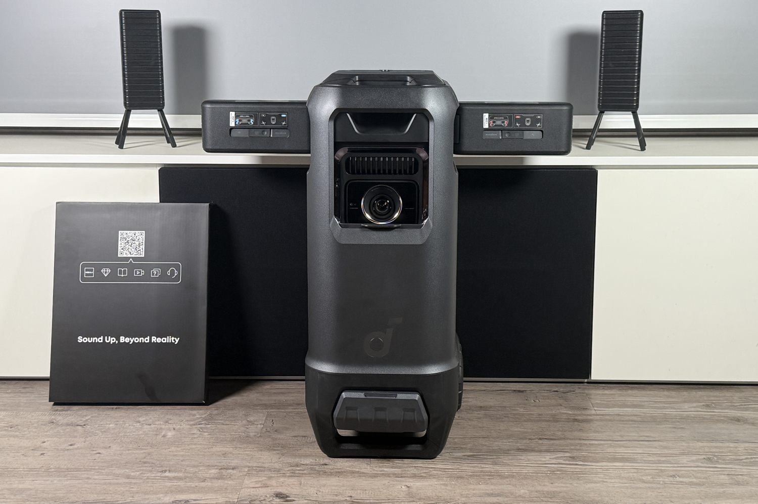 Die "Probleme" hat Anker Soundcore mit dem neuen X1 Pro angegangen und ein 7.1.4-Spatial-Sound-System mit Dolby Atmos in den XXL-Projektor gepackt. Somit gibt es insgesamt 7 horizontale Kanäle, Subwoofer sowie vier Lautsprecher für Höheneffekte über Kopf.