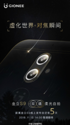 Kaum ein Smartphone-Hersteller, der mittlerweile nicht auf den Dual-Kamera-Zug aufgesprungen ist. Auch der vergleichsweise kleine chinesische Hersteller Gionee will nun mitmischen und kündigt mittels Teaser-Poster für den 15. November das S9 mit Dual-Kamera an. Dank vorgehender Leaks, haben wir auch entsprechende Daten zur Hand. Neben dem S9 dürfte auch eine etwas performantere Version als S9T auf den Markt kommen. Nachdem sowohl das Gionee S9 als auch das Gionee S9T bereits zur Zertifizierung bei der chinesischen Regulierungsbehörde TENAA zu Besuch waren, wissen wir, dass sich die beiden Versionen wohl nur durch den eingesetzten Prozessor voneinander unterscheiden werden.
