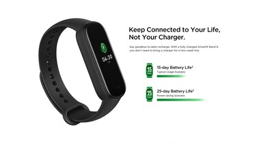 Die Produktseite beim chinesischen Händler wurde mittlerweile wieder entfernt, die Promos bleiben uns allerdings erhalten, ein Preis wurde leider nicht geleakt, ebenso ist aktuell unklar, wann das Amazfit Band 6 zu haben sein wird. Es handelt sich jedenfalls um ein dem Mi Smart Band 5 sehr ähnliches Armband, das aber offenbar nicht magnetisch lädt sondern klassischer über Pogo-Pins. Es gibt drei Farboptionen, das AMOLED-Display ist 1,1 Zoll groß und bietet 126 x 294 Pixel. Der Akku soll bei typischer Nutzung laut Amazfit 15 Tage durchhalten.