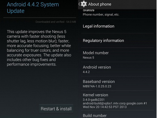 Nach dem HDR+-Update für die Kamera-App in Version 4.4.1 soll die neue Version von Android 4.4.2 KitKat nun weitere Bugfixes bringen und vor allem die Anzeigeprobleme mit dem Voicemail-Indikator beheben. Zudem schließt das KitKat-Update wieder eine Reihen von Sicherheitslöchern. Genauere Angaben hierzu machte Google allerdings bisher nicht.
