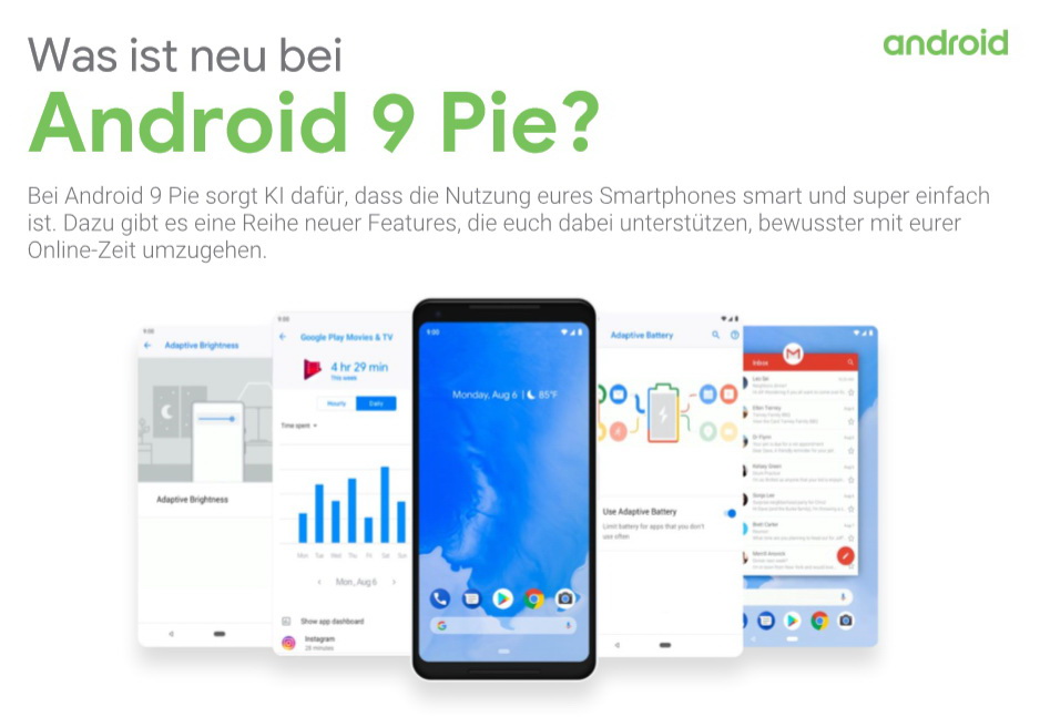 Google Android 9 Pie ist da: Bei Android Pie dreht sich alles um "Künstliche Intelligenz" (KI). Mit den neuen KI-Funktionen sollen unsere Android-Smartphones noch smarter, noch einfacher bedienbar werden und außerdem kontinuierlich dazulernen und noch schlauer werden. Zudem sollen sich die Handys noch besser an das Verhalten des jeweiligen Nutzers anpassen.