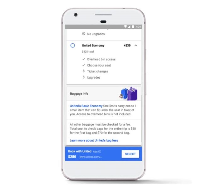 Auch den Grund für die Vorhersage will Google künftig, sofern bekannt, frei Haus liefern, eine Suche nach der Route beziehungsweise der Flugnummer reicht. Bei einigen Airlines wird Google ab sofort auch die Beschränkungen und Möglichkeiten der günstigeren Economy-Tarife anzeigen, beispielsweise zu Gepäckrichtlinien oder Sitzplatzreservierungen. Vorerst funktioniert das allerdings nur für die drei Airlines American, Delta und United.