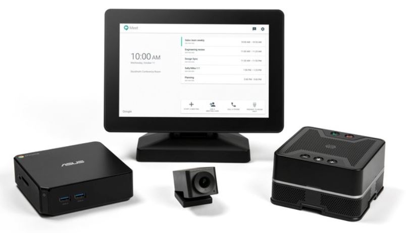 Als eigentliche Recheneinheit kommt eine Chromebox von Asus zum Einsatz, die automatisch Firmware-Updates erhalten soll. G-Suite-Kunden können Gespräche zudem direkt in die Cloud aufzeichnen.