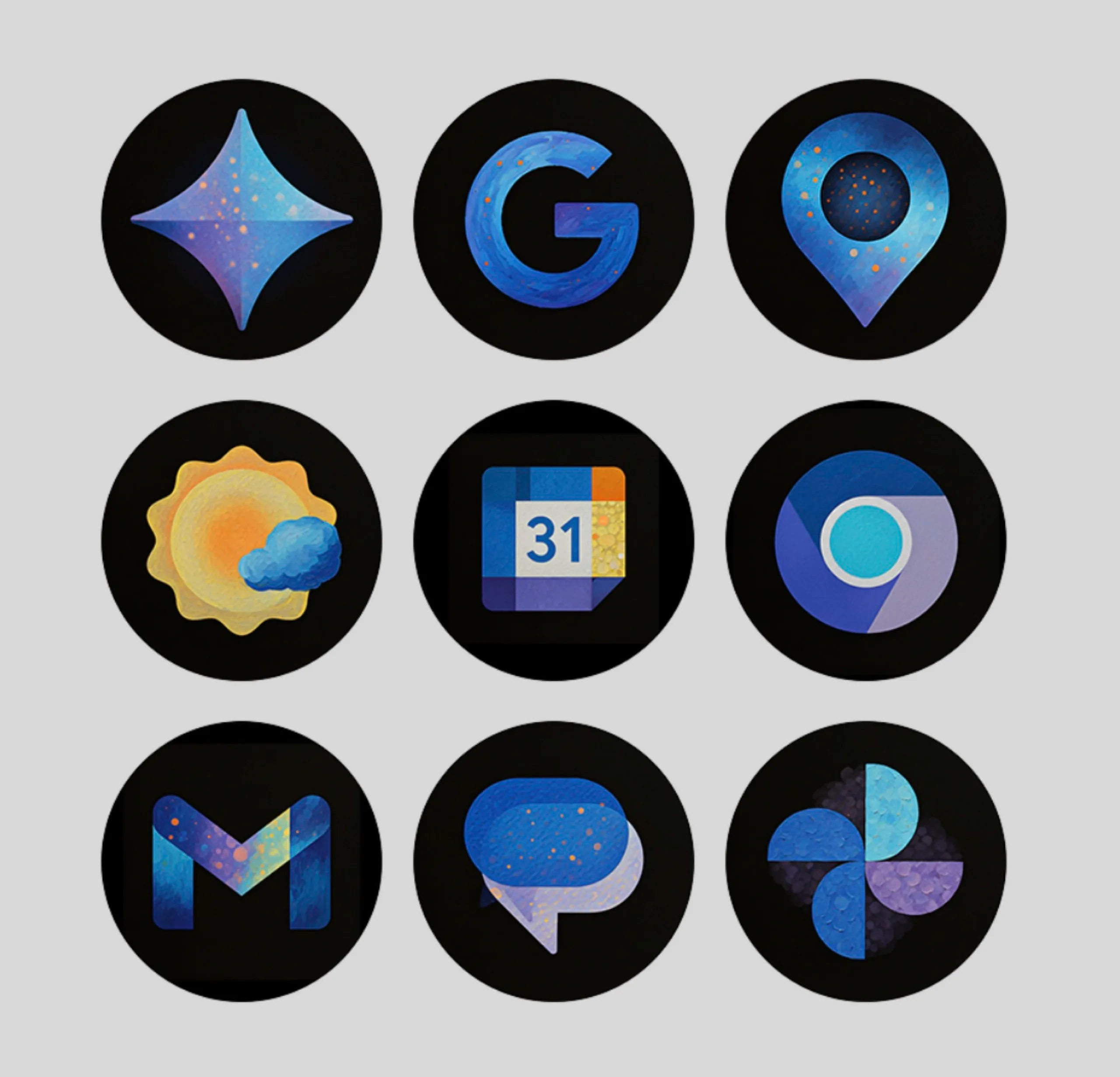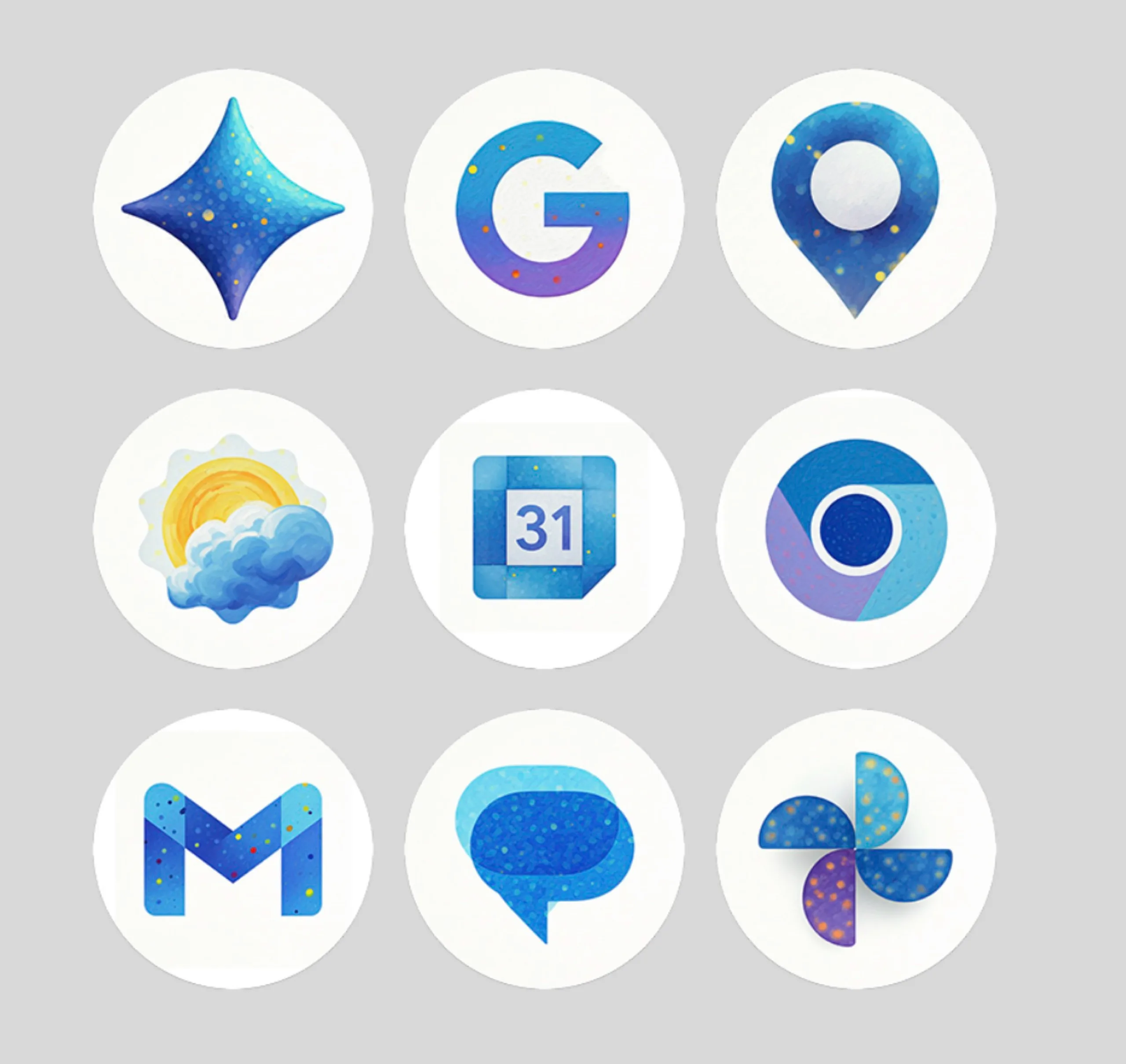 Der Farbton Isai Blue ist etwas dunkler als die ältere Version in Lavendel. Google liefert die Limited Edition in einer auffällig gestalteten Verpackung aus, in der neben dem Smartphone auch eine Reihe von Stickern sowie eine hellblaue Bumper-Hülle zu finden sind. Das Google Pixel 10a in der Isai Blue Limited Edition kommt mit drei exklusiven Themes, die per Hand liebevoll gestaltete Hintergrundbilder und App-Icons umfassen, die jeweils aus der Hand eines Künstlers stammen.