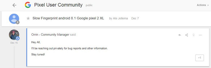 Orrin, Community Manager der Google Pixel User Community hat das Problem offiziell aufgenommen und bittet die betroffenen User um Geduld, der Fall werde von Google untersucht. Solche kleineren Bugs sollten die Pixel 2-Besitzer allerdings nach Meldungen von einbrennenden Pixel 2-Displays, einem Kamerafehler und Brummgeräuschen nicht mehr aus der Ruhe bringen.