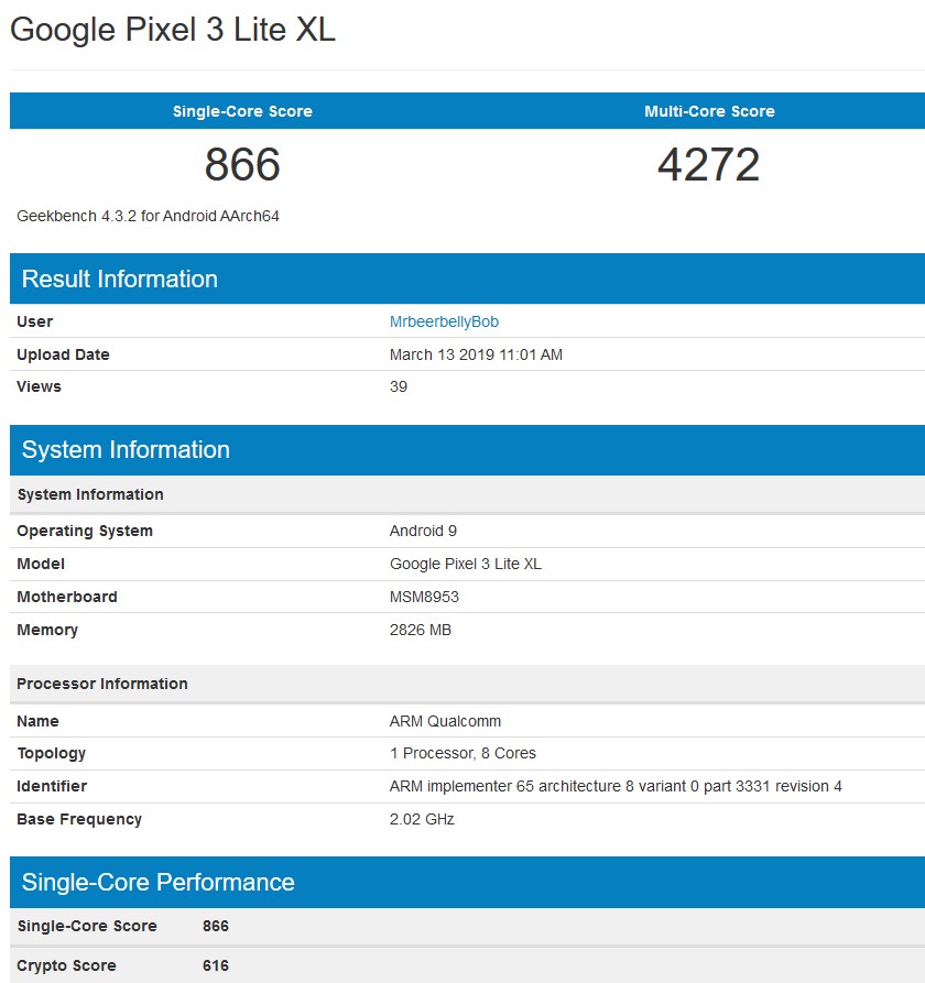 Während das Pixel 3 Lite XL in früheren Benchmarks mit einem Snapdragon 710 gelistet wurde, weist jetzt Geekbench als Prozessor einen alten MSM8953 von Qualcomm aus, der als Snapdragon 625 bekannt ist. Es klingt unwahrscheinlich, dass Google für ein neues Pixel-3-Phone einen SoC einsetzt, der vor gut drei Jahren auf den Markt gekommen ist. Denkbar wäre es allerdings, dass Google damit ein besonderes günstiges Modell für Emerging Markets wie Indien auflegen will.