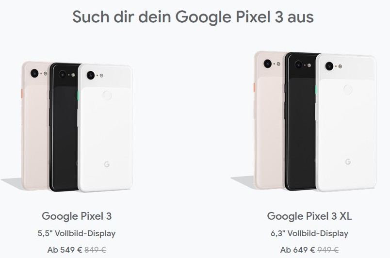 Google legt für verschiedene Produkte im eigenen Onlineshop Google Store teils stark rabattierte Sommerangebote auf. Auf den Kauf der Smartphones Pixel 3 oder Pixel 3 XL gewährt Google jeweils 300 Euro Rabatt. Das Angebot gilt bis zum 18. Juli 2019, 8:59 Uhr MESZ, solange der Vorrat reicht. Der Kauf muss im Google Store Deutschland erfolgen.