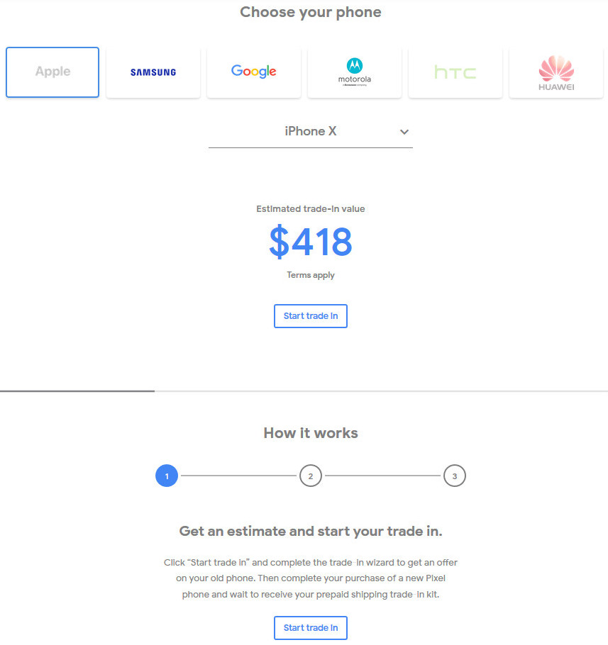 Laut der US-Seite im Google Store richtet sich der Trade-in auch an Besitzer von Smartphones, die bereits ein Google-Handy oder Geräte von HTC (U11), Huawei (Nexus 6P), Motorola (Nexus 6, Moto G6, Moto X4) und LG (Nexus 5X, G7, V35, V30, V20, G6) besitzen.
