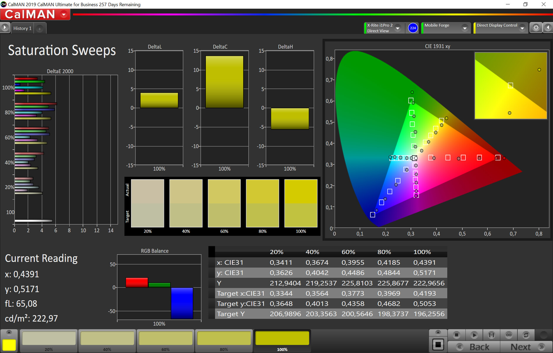 | Delta E Colorchecker * | 3.9 | 0.8 79% | 1.1 72% | 6.27 -61% | 0.8 79% | 2.67 32% |