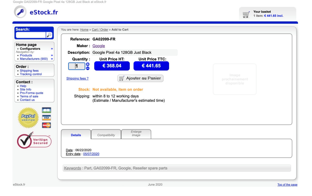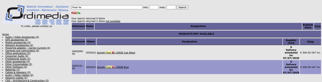 Ob an diesem Gerücht was wahres dran war, wissen wir nicht, nun taucht aber eine Art Gegenbeweis auf. Wie Reddit-User herausfanden, ist das Pixel 4a bereits bei zwei französischen Online-Retailern gelistet und zwar bei eStock und Ordimedia. Die Datenbankeinträge werfen allerdings weitere Fragen auf, denn die hier angegebenen Preise von 442 Euro beziehungsweise sogar 510 Euro wirken viel zu hoch, selbst im Vergleich zum Vorgänger Pixel 3a, das um 399 Euro auf den Markt kam und aktuell bei Amazon-Händlern, generalüberholt, bereits ab 287 Euro verkauft wird.