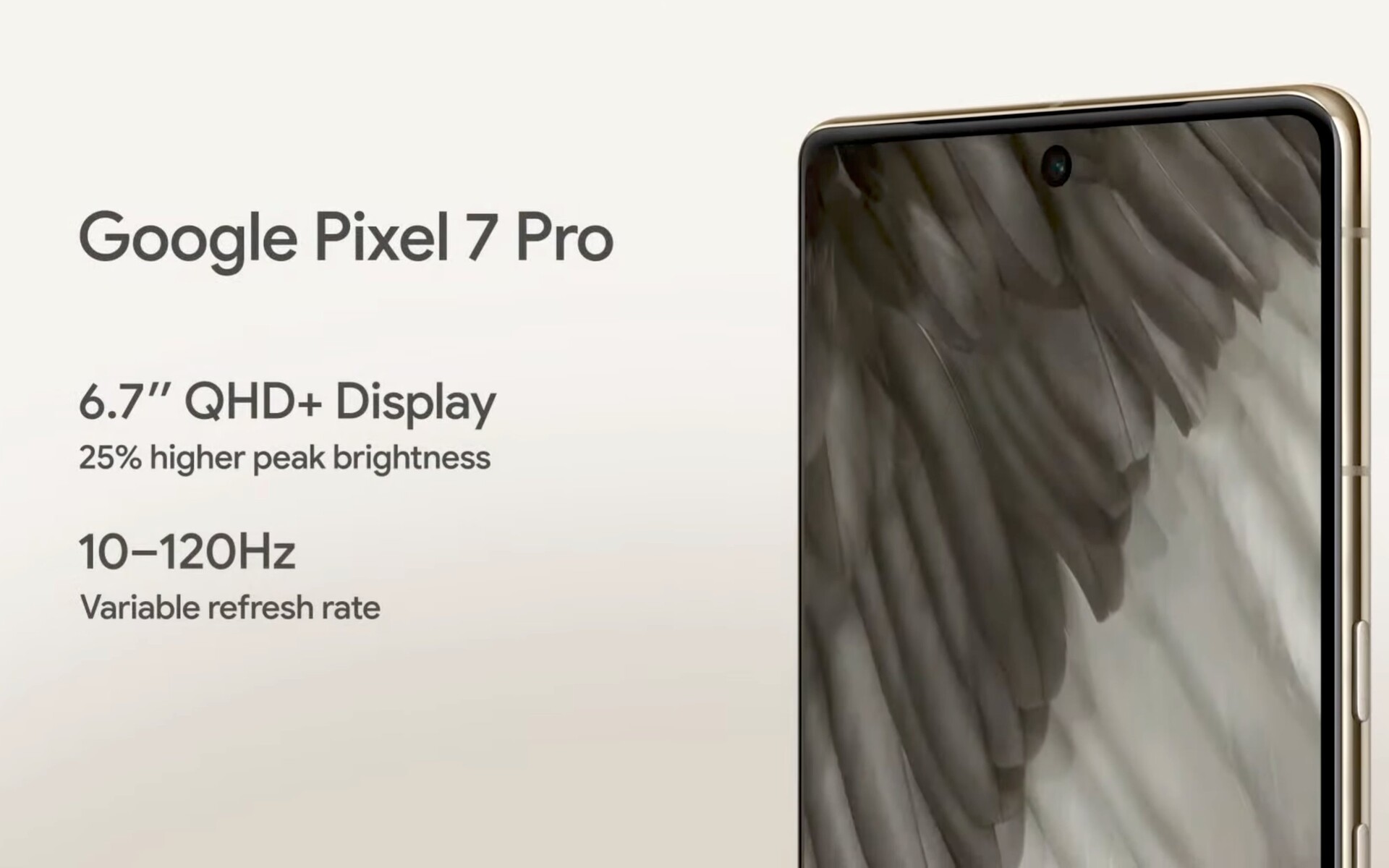 Das heute offiziell im Detail enthüllte Pixel 7 Pro teilt sich viele Specs mit dem Pixel 7. Wir wollen uns im Folgenden also auf die Unterschiede zwischen dem Zoll Pixel 7 und dem größeren Zoll Pixel 7 Pro konzentrieren, weitere Details zu den Gemeinsamkeiten findet ihr in dieser Pixel 7-News. Im Gegensatz zum kleinen Bruder wird das Display des Pixel 7 Pro nicht kleiner, es bleibt mit 6,7 Zoll (120 Hz, dynamisches LTPO, 3.120 x 1.440 Pixel, 1500 nits, 25 Prozent höhere Peak Brightness als Pixel 6 Pro) gleich groß, das Metallgehäuse mit Gorilla Glas Victus vorne und hinten schrumpft mit 162,9 x 76,6 x 8,9 mm dennoch eine Spur.