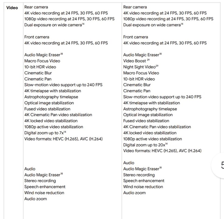 Vorläufiges Google Pixel 8 und Pixel 8 Pro Datenblatt: Kamerafeatures im Detail