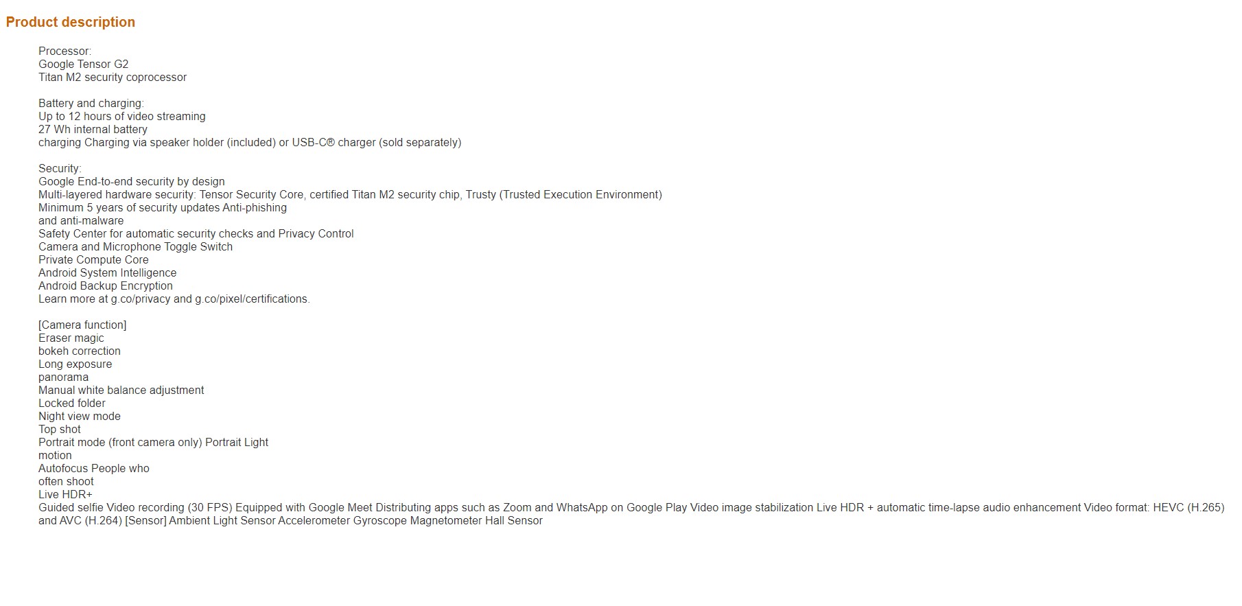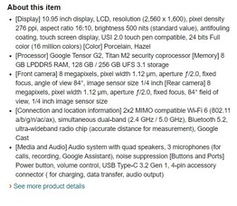 In punkto Kameras bietet Google zwei 8 Megapixel Sensoren, einmal vorne und einmal hinten (beide laut Amazon: 1,12 um Pixelgröße, F/2.0 Blende, Fixfokus, 84 Grad FOV, 1/4 Zoll Sensor), vier Lautsprecher sind für den Stereosound zuständig, neben USB-C 3.2 Gen 1 unterstützt das Google-Tablet 2x2 MIMO WiFi 6 (nicht 6E), Bluetooth 5.2 sowie UWB und kann via Pogo-Pins an der Rückseite mit dem ebenfalls bereits bei Amazon geleakten Dock verbunden werden. Der 27 Wh-Akku soll bis zu 12 Stunden Laufzeit bieten.