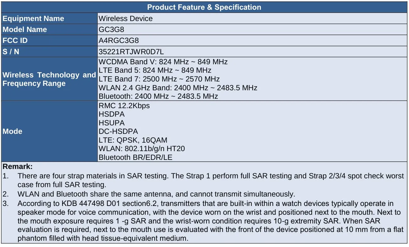 Drei verschiedene Modelle listet die FCC, eine Wi-Fi-Variante sowie zwei mit LTE. Hinter der Modellnummer G4TSL versteckt sich die Version mit Bluetooth und Wi-Fi. Dazu sind mit GC3G8 (unterstützt LTE-Bänder 5 und 7) sowie GD2WG (LTE-Bänder 2, 4, 5, 12, 13, 17, 25, 26, 66 und 71) wieder zwei verschiedene LTE-Varianten genannt.