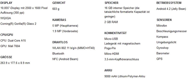 Mit dem Nexus 10 bringt Google ein 10,1-Zoll-Tablet mit hochauflösendem Display von 2.560 x 1.600 Bildpunkten. Als SoC rechnet ein Dual-Core ARM Cortex-A15 basierter 1,7 GHz schneller Samsung Exynos 5250. Als Grafik-IP fungiert eine Mali T604. Zur Ausstattung gehören ferner 2 GB RAM, 16 oder 32 GByte Speicher, eine 5-MP-Kamera (Rückseite) und ein 1,9-MP-Sensor an der Vorderseite. Das Nexus 10 mit 16 GByte wird bei Google Play mit 399 Euro, das Modell mit 32 GByte für 499 Euro gelistet.