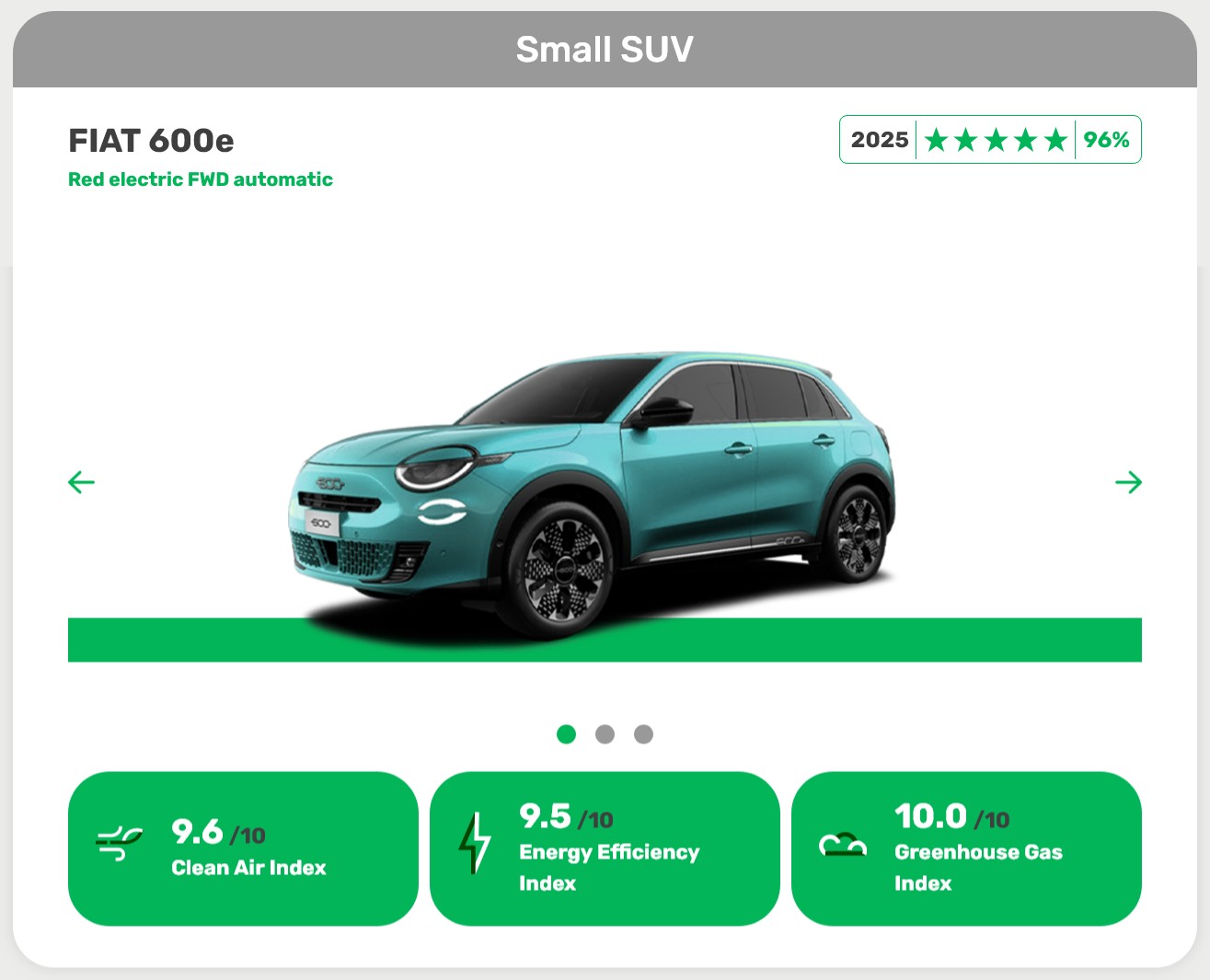 Ein ähnliches Bild zeigt sich eine Klasse höher bei den kompakten Familien-Stromern. Hier schnappt sich der Fiat 600e den Sieg, ebenfalls ein Modell, das nicht mit riesigem Akku protzt. Mit 51 kWh Kapazität schafft der Italiener laut Test die ideale Balance zwischen Reichweite und Umweltlast. Der Lohn sind fünf Sterne und ein Score von 96 Prozent. Dazu kommen Pluspunkte im Alltag: Der Fiat heizt effizient und produziert wenig Feinstaub durch Reifenabrieb, was sich besonders im Winter und auf der Autobahn auszahlt.