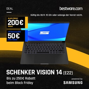 Das mit einem Gewicht von 1,1 bis 1,3 Kilogramm besonders kompakte Schenker Vision 14 (M22) kostet dank 250 Euro Rabatt aktuell nur 1.409 Euro, samt Intel Core i7-12700H, 14 Zoll 3K-Display im 16:10-Format und einem großen 99 Wh Akku. Eine Nvidia GeForce RTX 3050 Ti Laptop-GPU kann für einen Aufpreis von 239 Euro aufgerüstet werden. Dieses Modell bietet nur 8 GB RAM, für 50 Euro verbaut Schenker 16 GB.