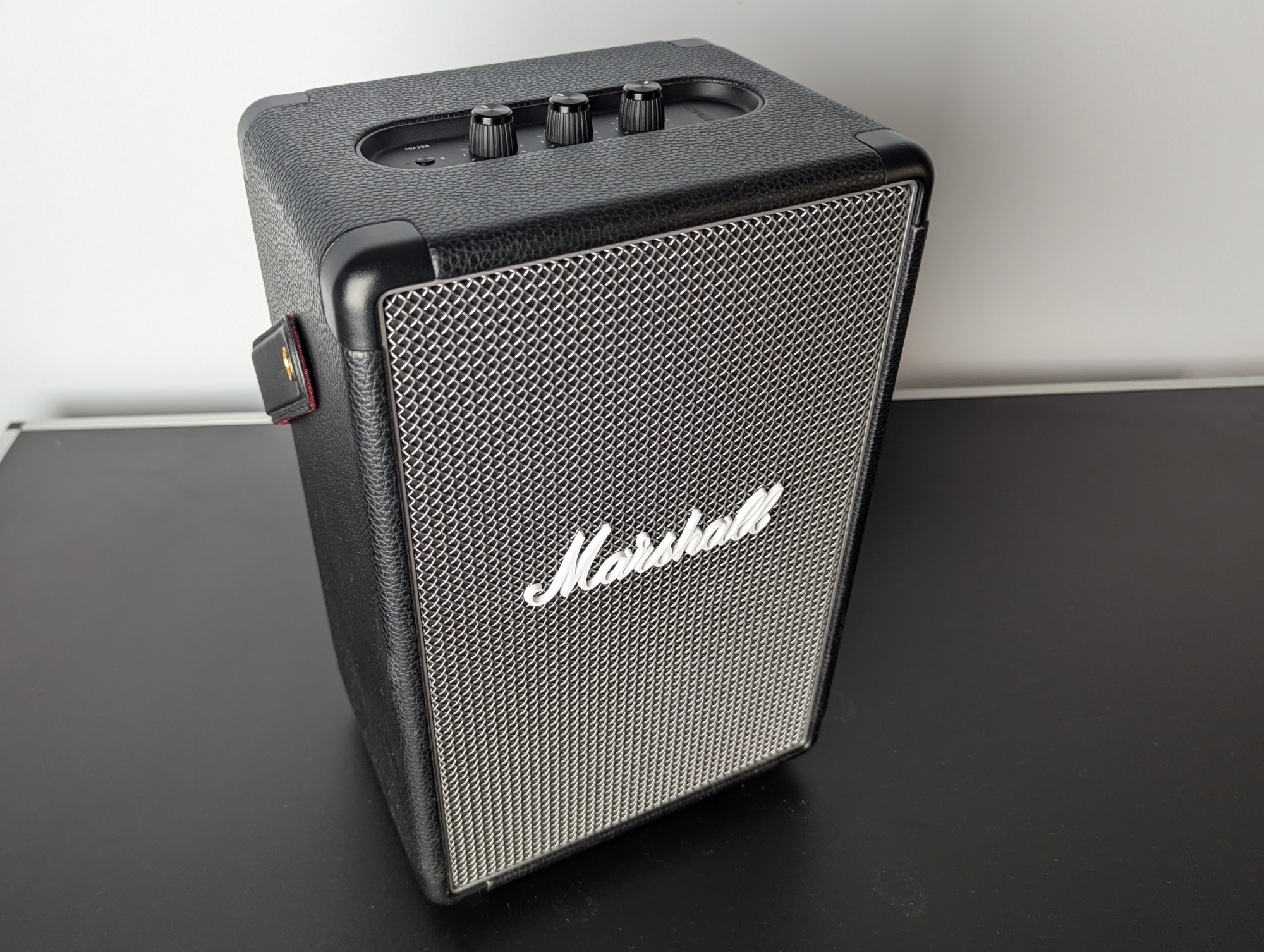 Der Marshall Tufton ist ein recht großer, spaßiger Bluetooth-Lautsprecher mit extrem starken Bass ohne viele Funktionen. Durch seine Drehregler ist er soundtechnisch dennoch flexibel.