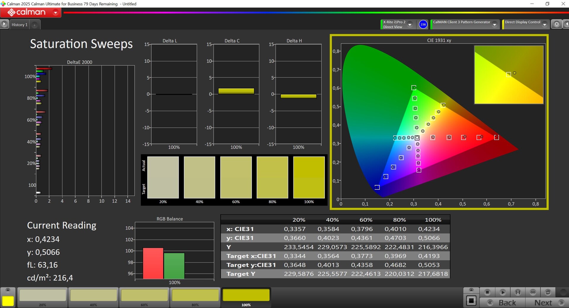 | Delta E Graustufen * | 5.8 | 3.2 45% | 1.7 71% | 4.6 21% | 4 31% | 4.5 22% |