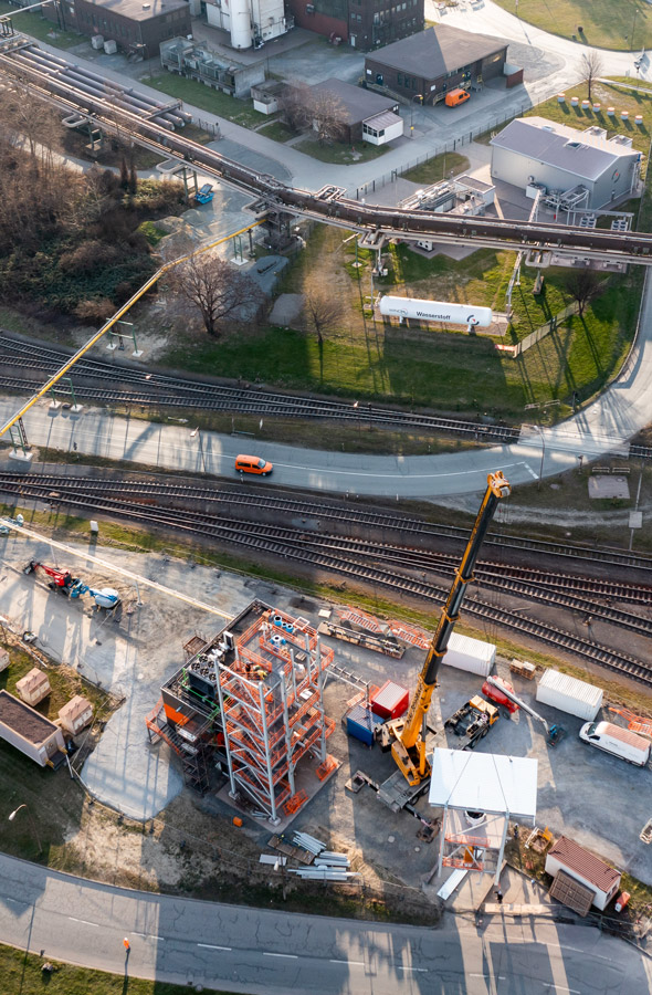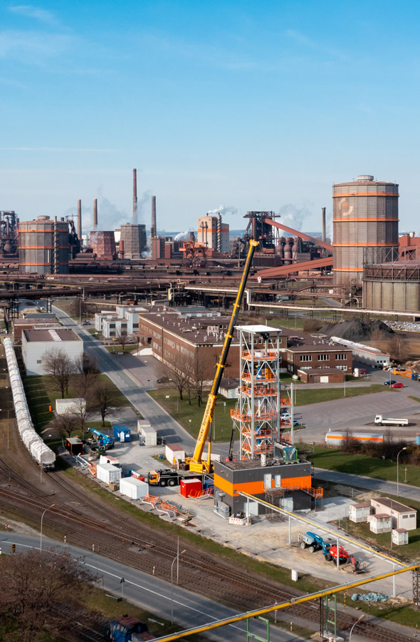 Ein Hochofen ist es nur noch, weil das Ziel das gleiche ist. Die erste mit Wasserstoff und Erdgas betriebene Direktreduktionsanlage, integriert in ein komplettes Hüttenwerk, hat in Salzgitter ihre Arbeit aufgenommen, um grünen Stahl herzustellen - mit 85 Prozent weniger CO₂-Ausstoß über den gesamten Prozess. Bei der reinen Eisengewinnung sollen es sogar 97 Prozent weniger CO₂ sein.
