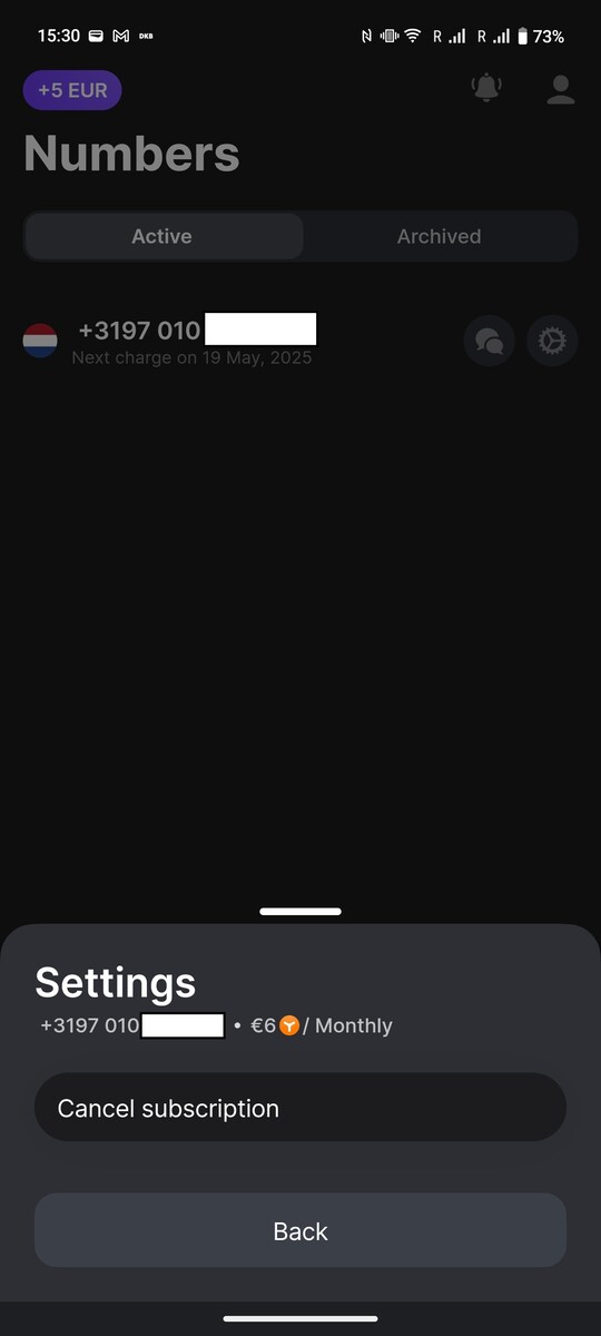 Was beide Konkurrenten aktuell nicht bieten sind virtuelle Telefonnummern. Bei Yesim kann man sich zusätzlich zu seiner internationalen Daten-SIM auch eine Nummer aus den USA, den Niederlanden, Kanada oder Israel zulegen, die dann für das Registrieren von Diensten wie Whatsapp, Telegram, Tinder, Tiktok oder Grindr genutzt werden kann, wenn man diese oder andere Dienste anonym nutzen will. Dieses Service kostet 3 Euro (bei jährlicher Bezahlung) oder 6 Euro pro Monat (bei monatlicher Bezahlung) und ist damit recht teuer, zumal man mit der Nummer nicht telefonieren kann. Eingehende SMS werden in der YeSim-App angezeigt, getestet habe ich das beispielsweise mit einer Dating-App. Leider verfällt die Reservierung für eine Nummer, sobald man sein Abo kündigt. Anschließend steht sie anderen Nutzern wieder zur Verfügung, womit dieses Service für kritische Dienste, etwa den persönlichen email-Account, nicht genutzt werden sollte.