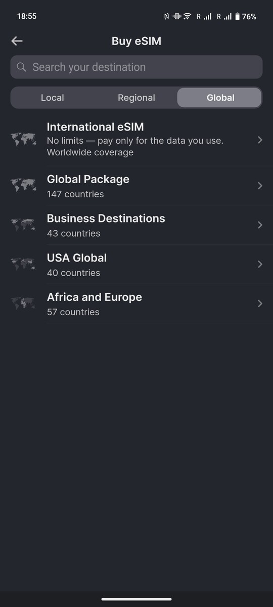 Man muss also in jedem Fall immer die Länderliste bei regionalen oder globalen Paketen überprüfen, wie auch ich schon mal lernen musst, als etwa die sogenannte globale eSIM von Eskimo partout keine Verbindung in Tunis aufbauen wollte. Tunesien gehört bem eSIM-Provider Eskimo leider nicht zum globalen Paket dazu. Ziemlich unangenehm, wenn man dann umsonst Geld für ein Paket ausgegeben hat und erst recht ohne Internet dasteht.